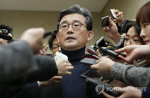 | △ 총선 불출마 선언 이한구 (서울=연합뉴스) 이상학 기자 = 새누리당 이한구 의원이 13일 국회 정론관에서 제20대 국회의원 총선 불출마 선언 기자회견을 마친 뒤 취재진의 질문에 답하고 있다. |
