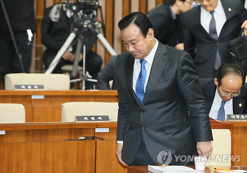 | △ 청문회 마친 이완구 후보자 (서울=연합뉴스) 진성철 기자 = 이완구 국무총리 후보자가 11일 밤 이틀간의 국회 인사청문회를 마친 뒤 굳은 표정으로 자리에서 일어나고 있다. |