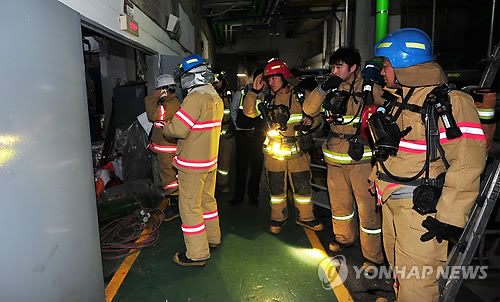 | △ 경주 코오롱호텔 이산화탄소 누출 (경주=연합뉴스) 임상현 기자 = 14일 이산화탄소 누출로 사상자가 발생한 경북 경주 코오롱호텔 지하 보일러실에서 소방 관계자들이 현장을 수습하고 있다. 2015.2.14 shlim@yna.co.kr |