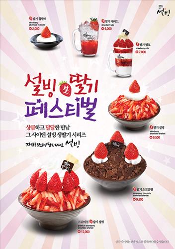 '생딸기 초코설빙'은 설빙의 특별 베이스 위에 초콜릿을 쌓고 생딸기를 올렸고, '생딸기 에이드'는 탄산수에 딸기 과육을 더해 풍부한 과즙과 톡 쏘는 상큼함을 느낄 수 있다. '생딸기 밀크'는 생딸기를 듬뿍 올렸다.