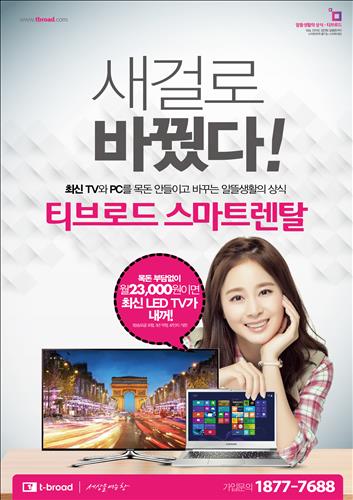 스마트렌털 상품은 대한 가입문의 등은 티브로드 홈페이지(www.tbroad.com)와 렌털전문상담전화(1877-7688)를 통해서 할 수 있다.