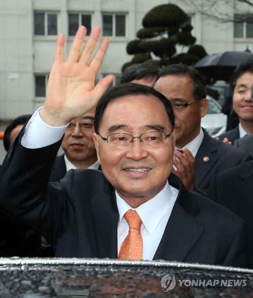 | △ 손 흔들며 떠나는 정홍원 국무총리 (서울=연합뉴스) 최재구 기자 = 이임식을 마친 정홍원 국무총리가 16일 정부서울청사를 떠나며 손을 흔들고 있다. |