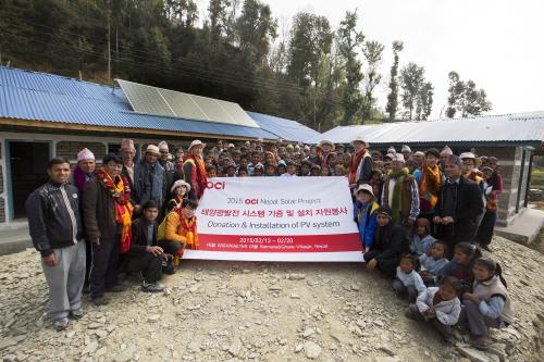OCI는 3년째 취약지역에 태양광발전설비를 기증하는 '솔라 프로젝트'를 추진하고 있으며 앞서 네팔 고산지역 4곳에 총 5㎾ 규모의 태양광 발전설비와 배터리, 충전제어장치를 선물했다.
