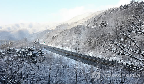 | △ 강원 산간에 대설…"동해안 귀성길 조심하세요" (강릉=연합뉴스) 유형재 기자 = 17일 향로봉에 19cm의 눈이 쌓이는 등 강원 산간지역에 많은 눈이 내린 가운데 영동고속도로 대관령 구간에서 차들이 조심스럽게 운전하고 있다. |