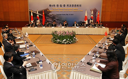 | △ 지난 2010년 경주 힐튼호텔에서 열린 한ㆍ일ㆍ중 외교장관회의 (연합뉴스 자료사진) |