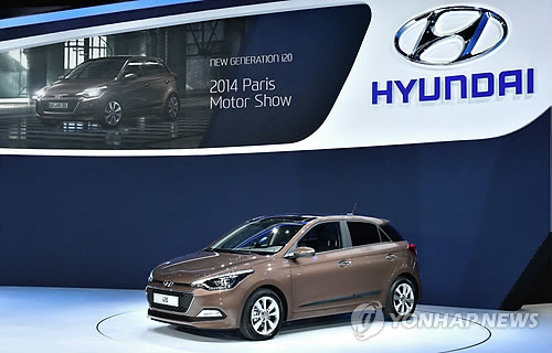 | △ 현대차는 작년 연말에 출시된 신형 i20의 판매 호조로 지난 1월 유럽 전체 판매 성장률(6.2%)을 뛰어넘었다. 사진은 '2014파리 모터쇼'에서 공개된 신형 i20.(현대차 제공) |