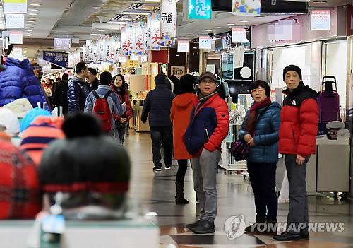 | △ 중국 최대 명절인 춘절(春節) 연휴가 시작된 18일 제주시 중앙지하상가에 유커(遊客·중국인 관광객)들이 찾아 쇼핑하고 있다. |