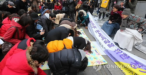 설 연휴에도 쉼없는 수요집회 "일본정부 사죄하라"