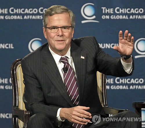 | △ 시카고 국제문제협의회 초청 강연회장의 젭 부시(AP=연합뉴스) |