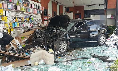 19일 경찰과 소방당국에 따르면 장모(84)씨가 모는 그랜저 승용차가 상가 1층에 있는 휴대전화 매장으로 돌진해 유리문을 들이받고 멈췄다. 이 사고로 장씨는 얼굴과 손 등을 다쳐 인근 병원으로 이송됐다.