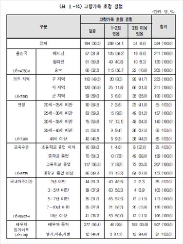 여성결혼이민자 28.8% "고향 가족 국내 방문한 적 없어"