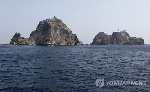 | △ epa03650684 A photo made available 05 April 2013 shows South Korea's easternmost islands of Dokdo, also called Takeshima in Japanese, on 4 April 2013. The South Korean government on 05 April summoned Kurai Takashi, the deputy chief of the Japanese Embassy in Seoul, over Japan's Diplomatic Blue Book 2013 in which the South Korean islands of Dokdo were described as Japanese territory again. Seoul urged Tokyo to 'immediately withdraw' the claim. Dokdo is currently being guarded by South Korea's coast guard. EPA/JO YONG-HAK |