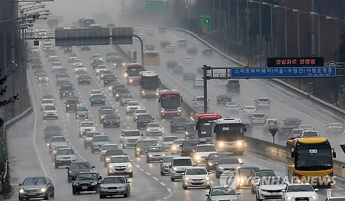 한국도로공사에 따르면 이날 오후 5시 현재 요금소와 요금소 사이를 기준으로 부산에서 출발한 승용차가 서울까지 도착하는 데 걸리는 예상 소요시간은 5시간30분이다.