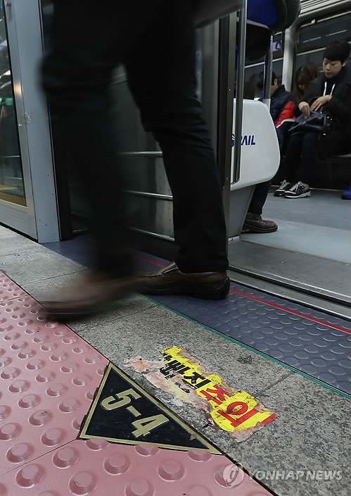(서울=연합뉴스) 김윤구 기자 = 지하철역에서 승강장과 열차 사이의 틈으로 승객의 발이 빠지는 사고가 끊이지 않고 있다.