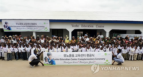 (서울=연합뉴스) 이대희 기자 = 국제구호단체 기아대책은 동방신기 멤버인 유노윤호와 그의 팬들의 후원으로 아프리카 가나에 교육센터를 세웠다고 23일 밝혔다.