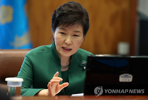 | △ 수석비서관회의 발언하는 박 대통령 (서울=연합뉴스) 도광환 기자 = 박근혜 대통령이 23일 오전 청와대에서 열린 수석비서관회의를 주재하며 발언하고 있다. |