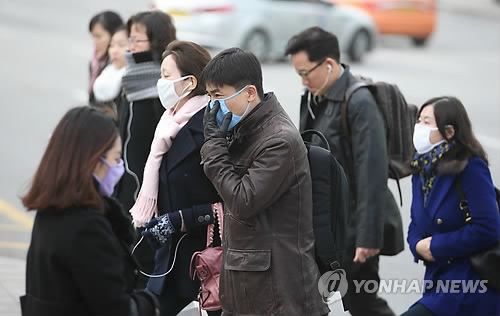 (서울=연합뉴스) 이대희 이슬기 기자 = 5년 만에 최악의 겨울 황사가 닥친 23일 서울시내는 마스크 물결이 연출됐다.
