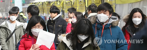 | △ 광화문광장 마스크부대 (서울=연합뉴스) 임헌정 기자 = 중국발 황사가 한반도를 뒤덮은 23일 서울 종로구 광화문 광장에서 마스크를 쓴 외국인 관광객들이 발걸음을 서두르고 있다. 2015.2.23 kane@yna.co.kr |