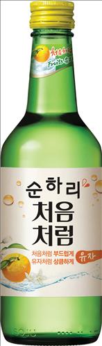 '처음처럼 순하리' 유자맛은 용량 360㎖에 알코올 도수 14도로 소주보다 낮다. 천연 유자 농축액과 유자향을 첨가해 유자 특유의 새콤달콤한 맛과 부드러운 목넘김이 특징인 리큐르 제품으로 출고가는 962.5원이다.