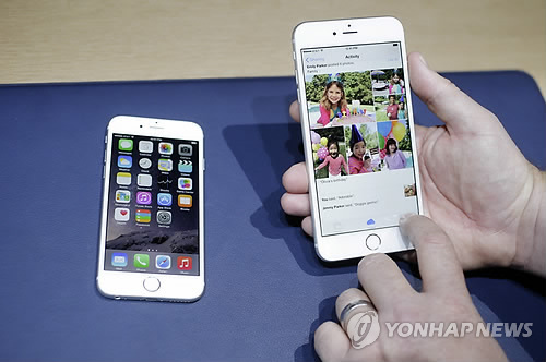 | △ '아이폰6'(왼쪽) 와 '아이폰6 플러스' (AP=연합뉴스) |