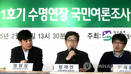 환경운동연합은 24일 오후 서울 종로구 사무실에서 기자회견을 열어 전날 성인남녀 1천명을 상대로 월성원전 1호기 수명연장에 대해 긴급 여론조사를 벌인 결과 60.8%가 원전의 안전성이 담보되지 않아 폐쇄해야 한다고 응답했다고 밝혔다.