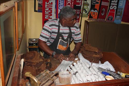 | △ 쿠바 수도 아바나의 시가 판매점에서 직원이 시가를 말고 있다.(아바나=연합뉴스) |