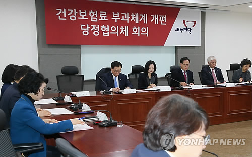 (서울=연합뉴스) 이귀원 류미나 기자 = 새누리당과 정부는 25일 국회 의원회관에서 '건강보험료 부과체계 개선 당정협의체' 1차 회의를 개최하고 올해 모든 가입자의 보험료 부과자료를 활용해 정밀한 시뮬레이션을 실시키로 했다.