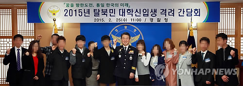 ▲ 강신명 경찰청장은 25일 서대문구 본청에서 2015학년도 대학 입학시험에 합격한 탈북민 대학 신입생 14명을 초청해 격려 간담회를 가졌다. (서울=연합뉴스)