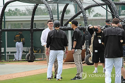 이날 스프링캠프를 찾은 로버트 너팅 피츠버그 구단주는 강정호에게 먼저 다가가 악수를 청하며 "좋은 시기에 우리 팀에 와 기대가 크다"고 환영했고, 강정호는 "피츠버그에 와서 영광이다"라고 화답했다.