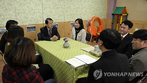| △ 전북경찰, 어린이집 현장 간담회 (전주=연합뉴스) 홍성삼 전북지방경찰청장은 4일 오후 아동학대 전수조사 대상인 전북 전주시내 한 어린이집을 방문해 현장 간담회를 열었다. 이날 홍성삼 청장을 비롯해 김태형 여성보호계장 등 경찰 지휘부는 전수조사 대상 어린이집을 방문해 아동학대 예방교육과 전수조사에 대한 협조를 당부했다. 2015.2.4 <<전북지방경찰청>> chinakim@yna.co.kr |