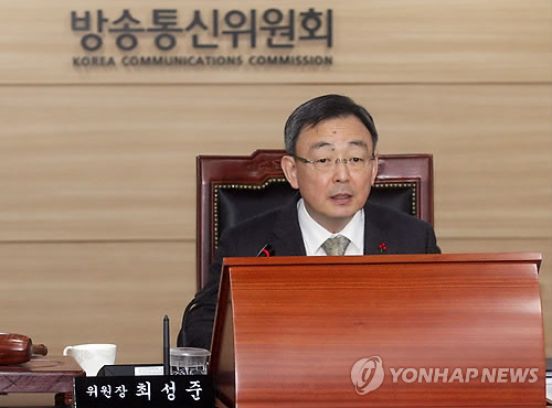 | △ 방통위 전체회의 주재하는 최성준 위원장 (서울=연합뉴스) 최성준 방송통신위원회 위원장이 19일 정부과천청사에서 방통위 전체회의를 주재하고 있다. 2014.12.19 << 방송통신위원회 제공 >> photo@yna.co.kr |
