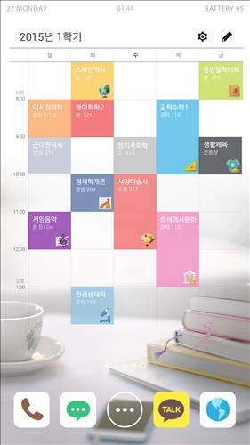 스마트폰 홈 화면에서 수업시간과 강의실 정보, 과목별 할일, 이후 일정 등을 통합적으로 관리할 수 있다.