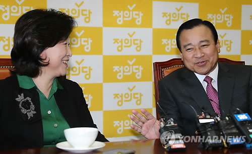 | △ 이완구 총리, 심상정 원내대표 예방 (서울=연합뉴스) 백승렬 기자 = 이완구 국무총리가 27일 국회 정의당 원내대표실을 방문, 심상정 원내대표와 대화하고 있다. |