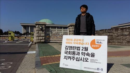 "'김영란법' 통과시켜야" 참여연대 국회앞 1인 시위