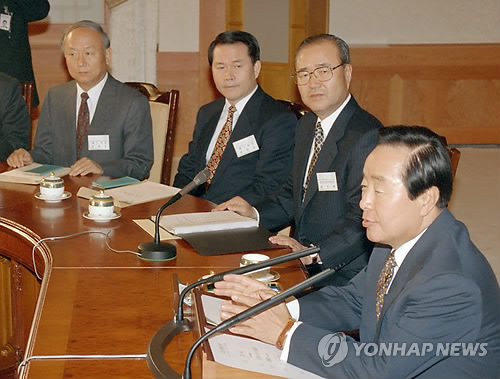 | △ 안기부 시절의 신임 국정원장 (서울=연합뉴스) 27일 신임 국가정보원장에 내정된 이병호 전 국정원 2차장(맨 왼쪽)이 지난 1995년 1월 김영삼 대통령 주재로 열린 업무보고에 배석해 있다. 김대통령 왼쪽은 권영해 안기부장. |
