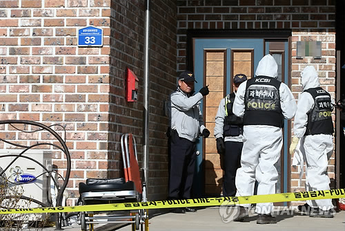 | △ 경기 화성 공기총 난사 사건 현장 (화성=연합뉴스) 신영근 기자 = 27일 오전 공기총 난사로 4명이 숨진 경기도 화성 사건 현장에서 경찰 관계자들이 조사를 벌이고 있다. 2015.2.27 drops@yna.co.kr http://blog.yonhapnews.co.kr/geenang |