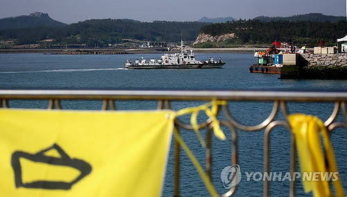 | △ 지난해 5월 15일 오후 전남 진도군 임회면 팽목항에 수습된 희생자 시신을 운구하는 해경 경비정이 도착하고 있다. (연합뉴스 자료사진) |
