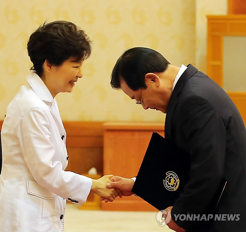 박 대통령은 이날 중동 4개국 순방을 위한 해외출장에 앞서 지난 27일 김기춘 전 실장의 후임으로 발탁한 이 실장에 대한 공식임명 절차를 마쳤다.