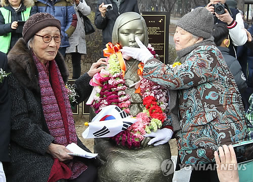 (대전=연합뉴스) 이재림 기자 = 일본군 위안부 피해자를 기리기 위한 '평화의 소녀상'이 대전에도 세워졌다.