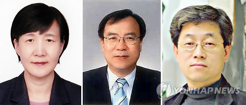 | △ 환경운동연합 대표에 권태선·장재연·박재묵씨 (서울=연합뉴스) 환경운동연합은 신임 공동대표로 권태선 허핑턴포스트코리아 대표(왼쪽부터), 박재묵 충남대 사회학과 교수, 장재연 아주대 의과대학 교수 등 3명을 선출했다고 1일 밝혔다. (환경운동연합 제공) |
