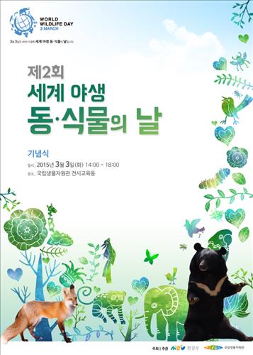 (세종=연합뉴스) 이상헌 기자 = 환경부는 3일 '제2회 야생 동·식물의 날'(World wildlife Day)을 맞아 오후 2시 인천 국립생물자원관에서 기념식을 연다.