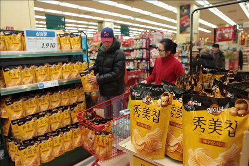 1월 기준 제과업체별 스낵시장 점유율에서도 농심은 지난해 12월에 비해 1% 포인트 높은 32.3%로 선두를 고수했다.
