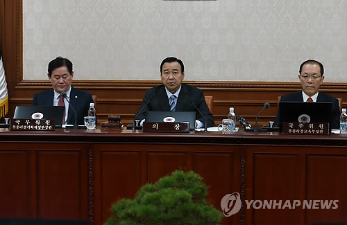 | △ 이 총리 모두발언 (서울=연합뉴스) 전수영 기자 = 이완구 국무총리가 3일 오전 서울 세종로 정부서울청사에서 열린 국무회의에서 모두발언을 하고 있다. 이총리는 박근혜 대통령의 중동 순방 기간 정부 대책으로 "재난·안전사고 예방과 국가안보 등에 허점이 생기지 않도록 상황관리에 철저해야 한다"고 밝혔다. |