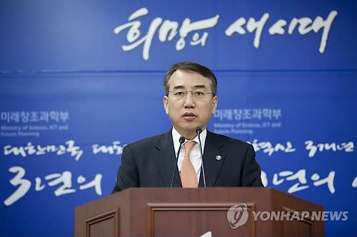 | △ 클라우드컴퓨팅 발전법 브리핑하는 이석준 미래부 차관 (서울=연합뉴스) 이석준 미래창조과학부 제1차관이 3일 과천시 관문로 정부과천청사 미래부 기자실에서 클라우드컴퓨팅 발전법 관련 브리핑을 하고 있다. (미래부 제공) |