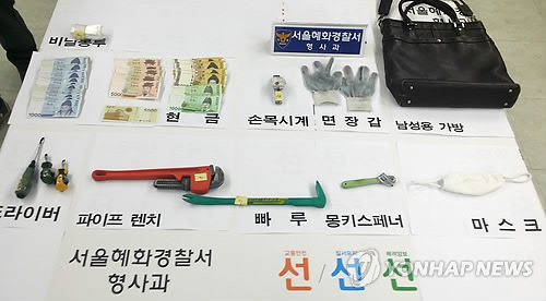 (서울=연합뉴스) 이태수 기자 = 서울 혜화경찰서는 수도권 일대 다세대 주택을 돌며 수천만원어치의 금품을 턴 혐의(상습절도 등)로 이모(49)씨를 구속했다고 4일 밝혔다.