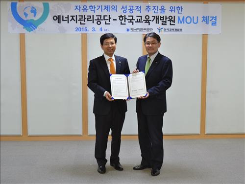 (서울=연합뉴스) 김지훈 기자 = 에너지관리공단은 4일 에너지관리공단 본사에서 한국교육개발원과 '중학교 자유학기제의 성공적 추진을 위한 업무협약'을 맺었다.