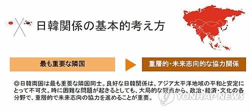 외무성은 '우리나라(일본)와 자유와 민주주의, 시장경제 등의 기본적 가치를 공유하는 중요한 이웃나라'라는 한국 소개 문구를 이달 2일 '가장 중요한 이웃나라'로 바꾸었다.