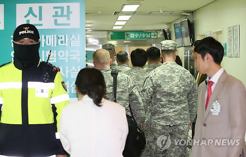 | △ 응급실 향하는 주한미군 (서울=연합뉴스) 임헌정 기자 = 5일 서울 세종문화회관에서 열린 행사에 참석했다 테러를 당한 마크 리퍼트 주한 미국대사가 응급치료를 위해 이송된 강북삼성병원에서 주한미군 관계자들이 응급실로 향하고 있다. |
