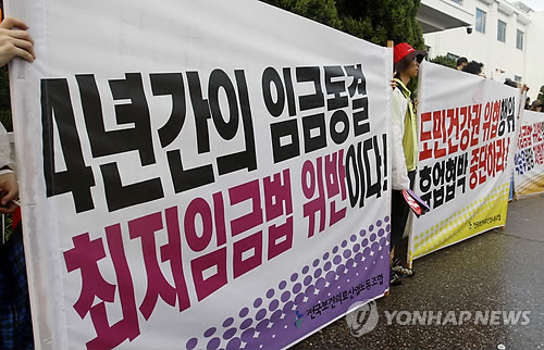 지난해 6월 결정된 최고임금 인상률은 7.1%로 전년의 7.2%와 비슷한 수준이었다. 이는 2%대 인상률을 기록했던 2010년과 비교해 크게 오른 것이지만 노동계와 야당은 줄기차게 최저임금 인상을 요구해왔다.
