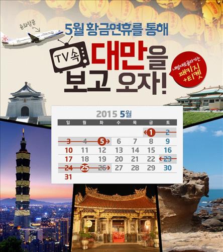 (서울=연합뉴스) 전준상 기자 = 직판여행사인 노랑풍선은 5월 황금연휴에 출발하는 홍콩과 대만 등 중화권 여행상품 기획전을 선보인다고 5일 밝혔다.